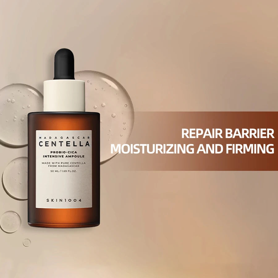 The SKIN1004 Madagascar Centella Probio-Cica Intensive Ampoule is a powerful repairing serum that strengthens your skin barrier and restores balance.