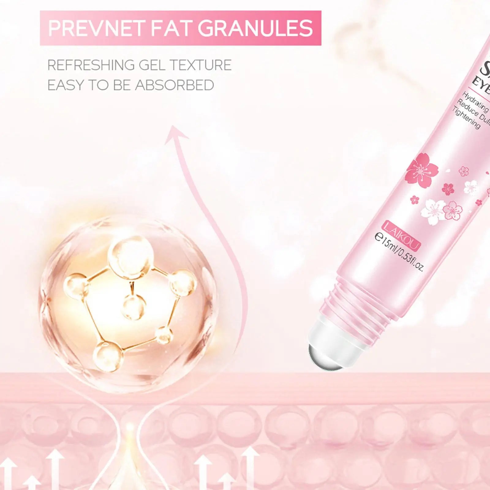 15ml Sakura Serum Eye Massage Cream Slide Ball Essence Firming Remover Dark Circles Wrinkle Anti-Puffiness Bags Under Eye Serum