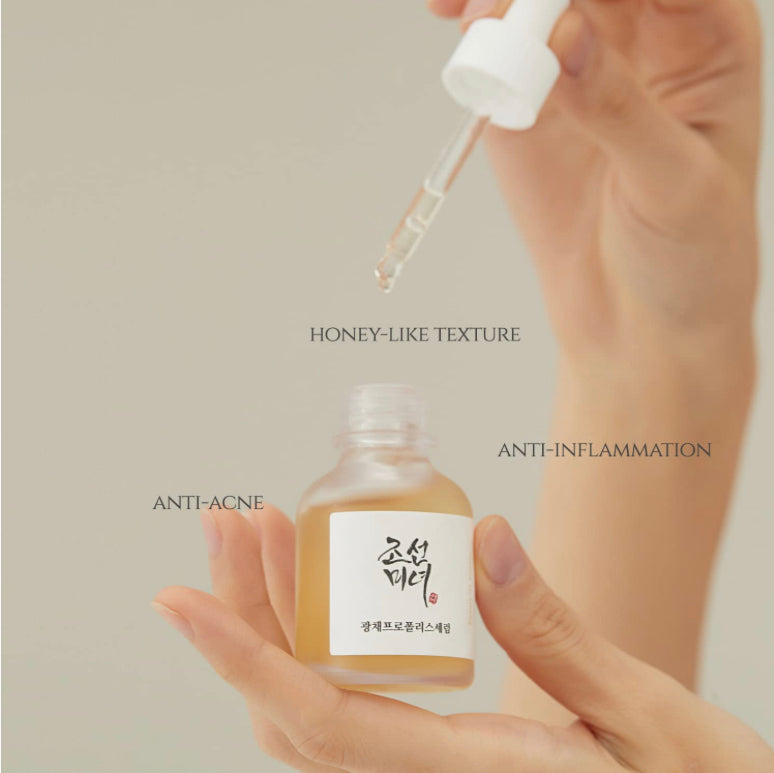 The Beauty of Joseon Glow Serum combines the healing power of Propolis Extract with Niacinamide to soothe, brighten, and nourish the skin.