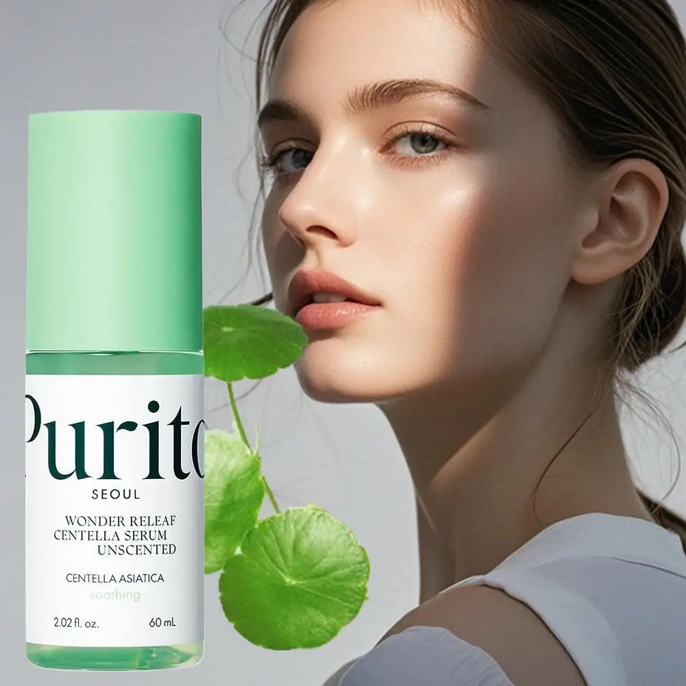 The Purito Wonder Releaf Centella Serum Unscented is a gentle, fragrance-free serum formulated with 49% Centella Asiatica extract to calm irritation, repair the skin barrier, and deeply hydrate.